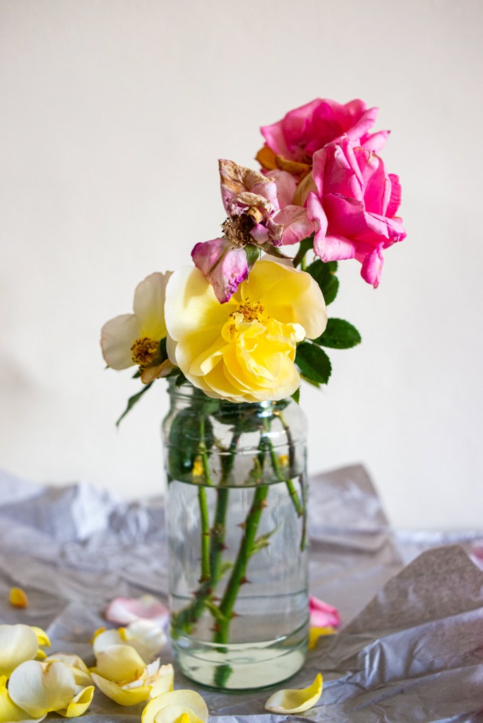 The project started in London, my home for almost three decades, as a documentation on urban nature and flower gardens in the parks along Thames path. In 2018, I participated in River to River, Coast to Coast artist presentation in London, focusing on ocean plastics and sustainability issues. Then I began to explore flower photography in various recycled containers.
