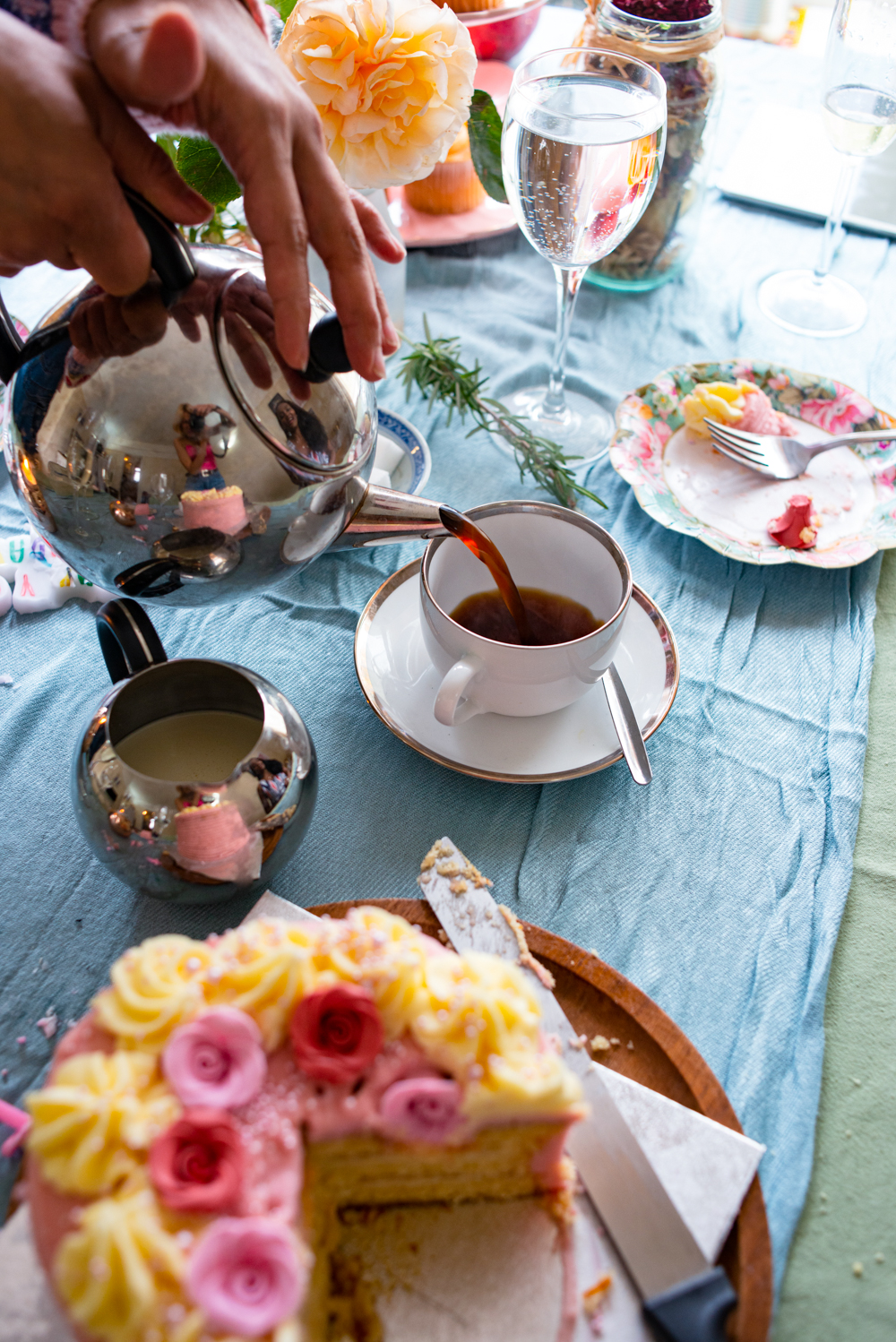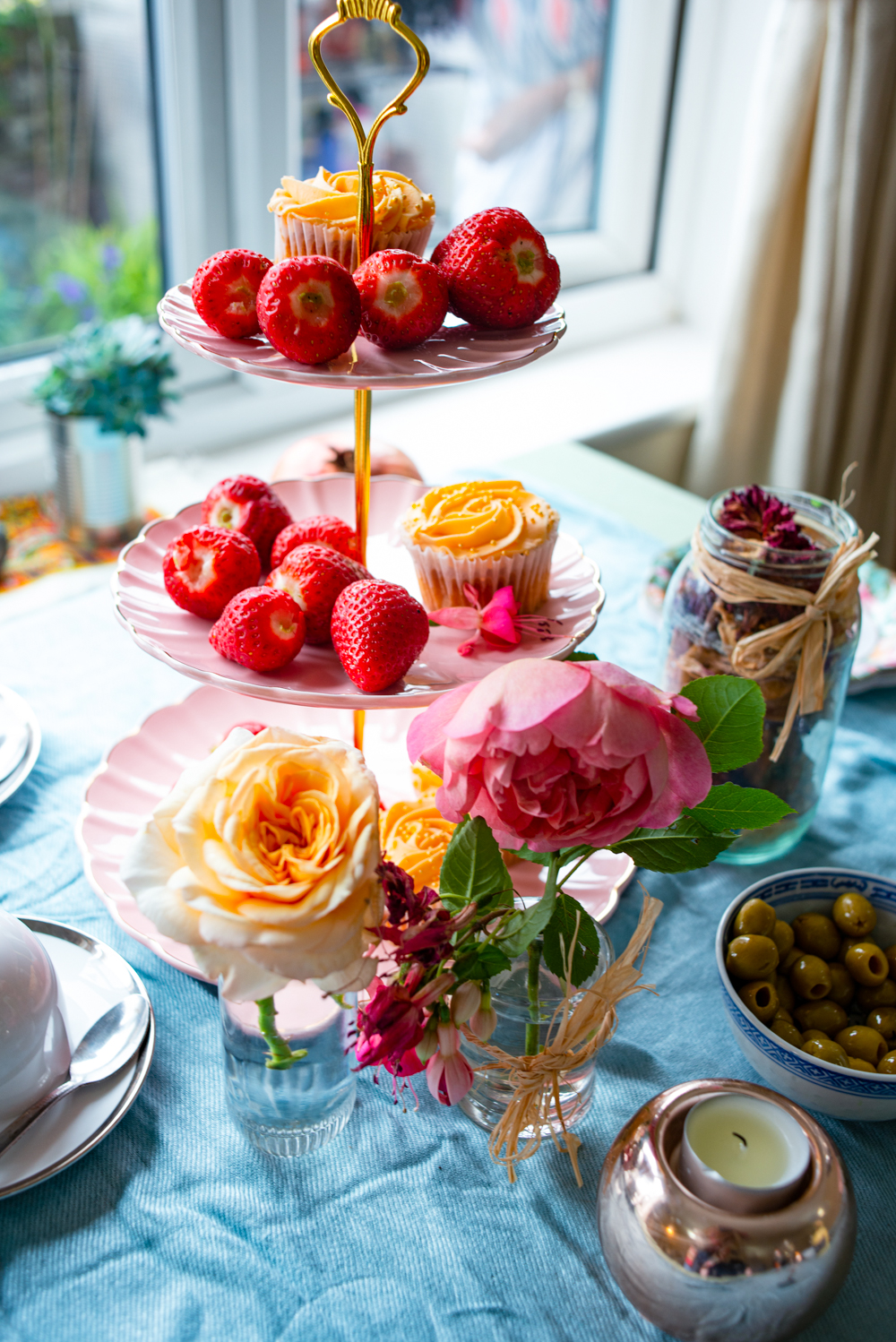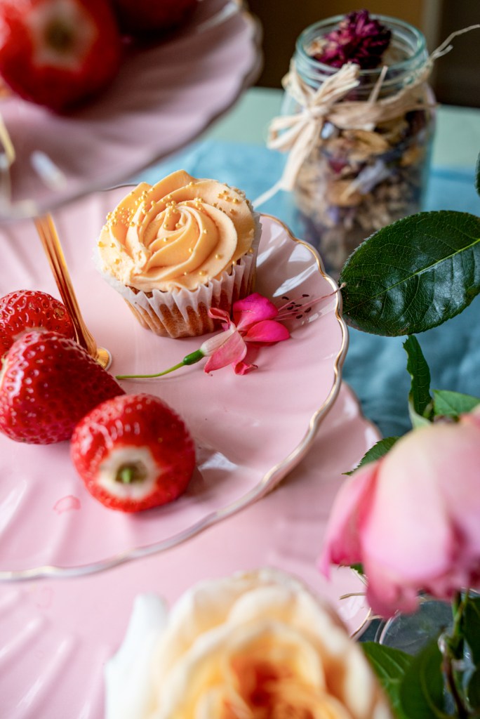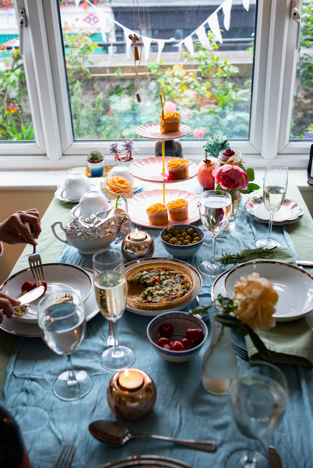In London, we celebrated the summer flower harvest by hosting an intimate tea party at our flat in Fulham. I didn’t plan too hard. We picked up English strawberries, bubblies, muffins, cakes and quiche from our local Waitrose patisserie.