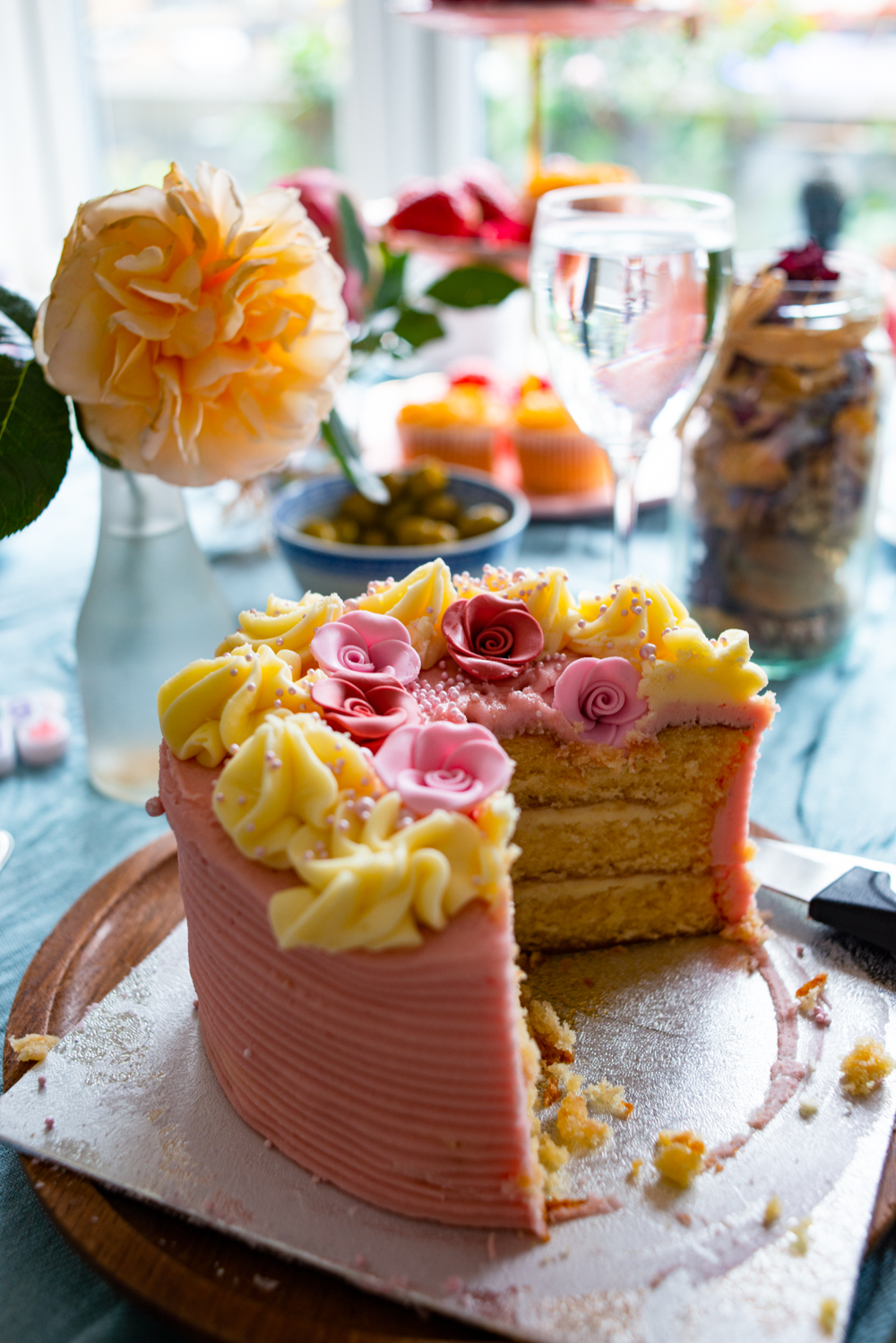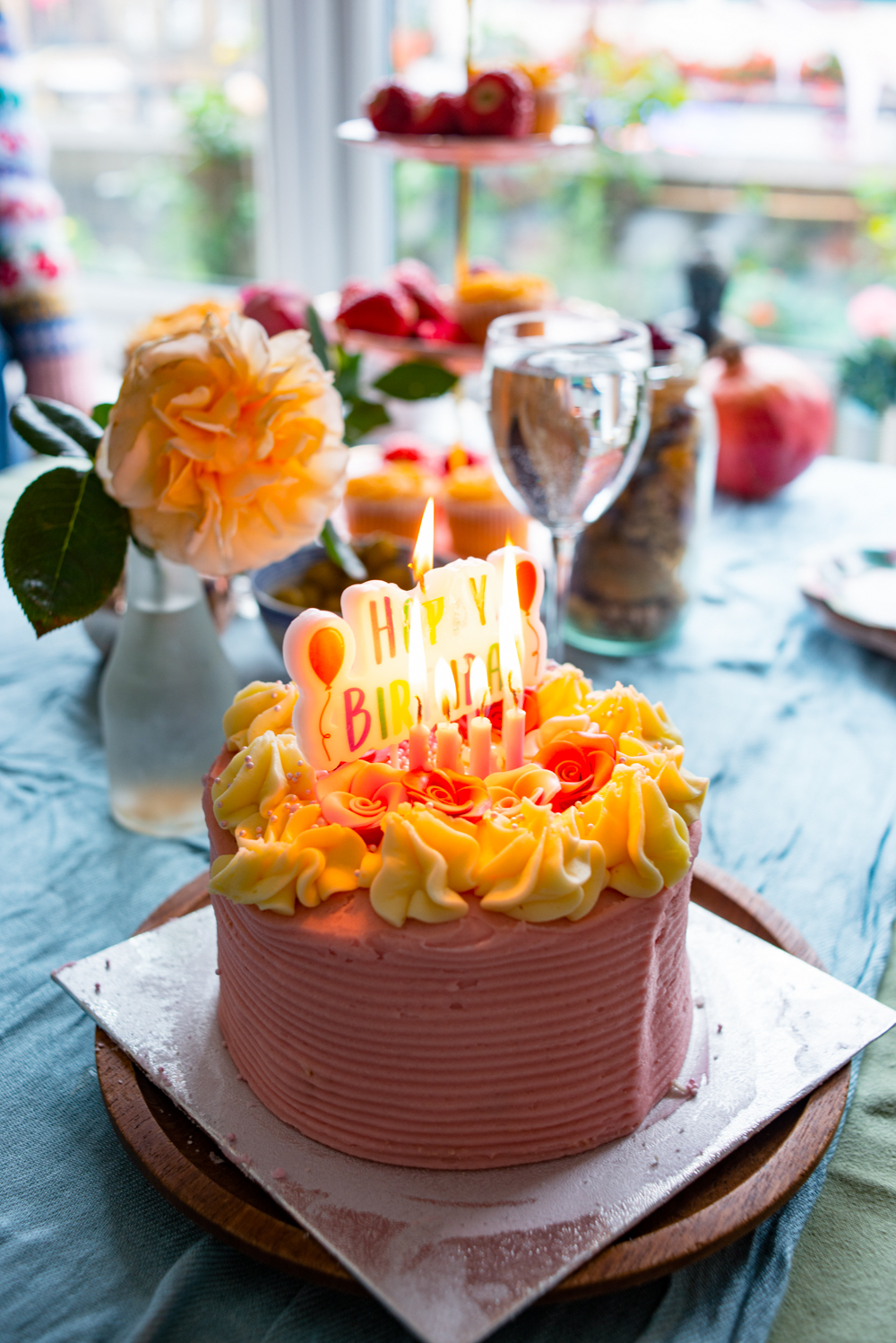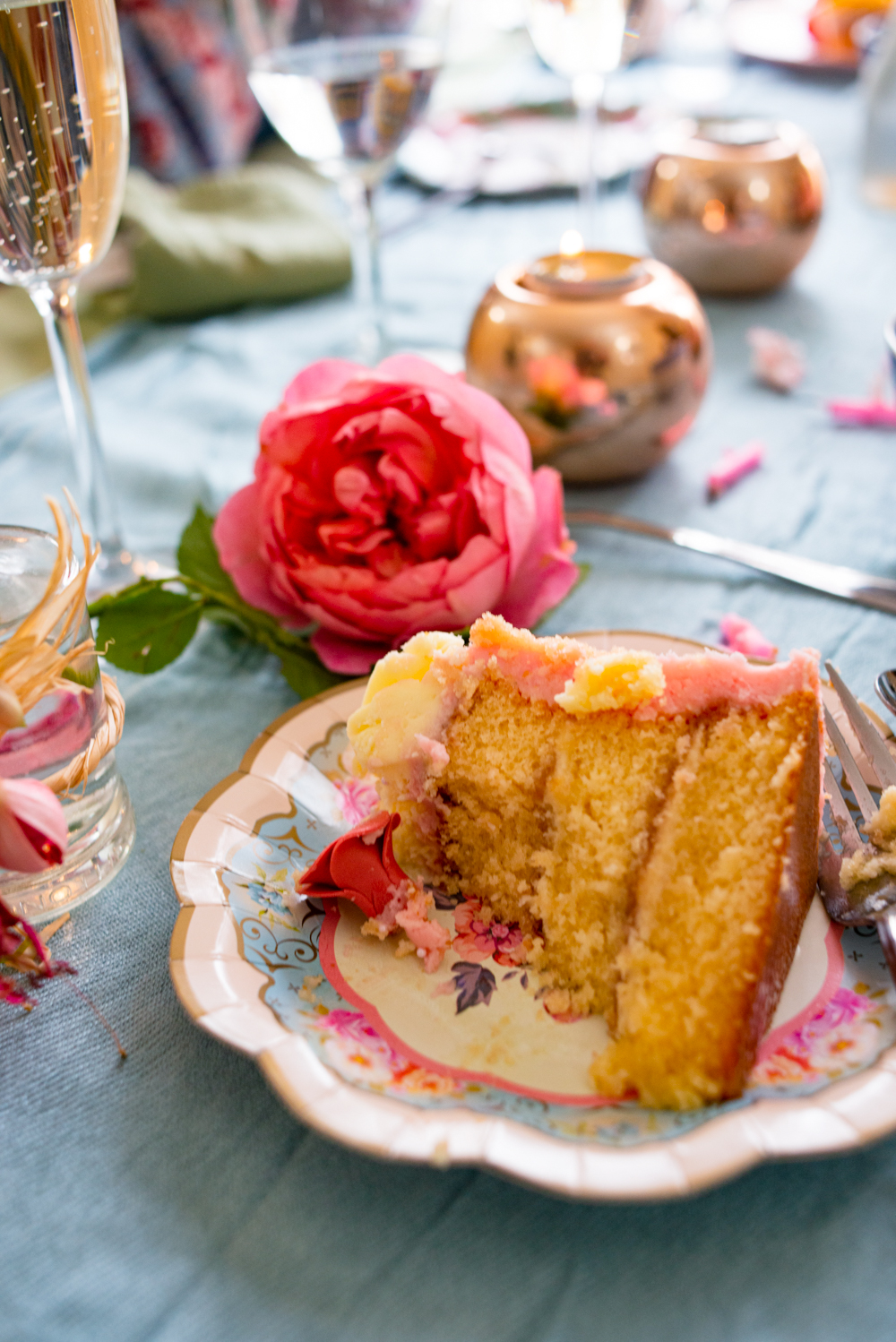 In London, we celebrated the summer flower harvest by hosting an intimate tea party at our flat in Fulham. I didn’t plan too hard. We picked up English strawberries, bubblies, muffins, cakes and quiche from our local Waitrose patisserie.