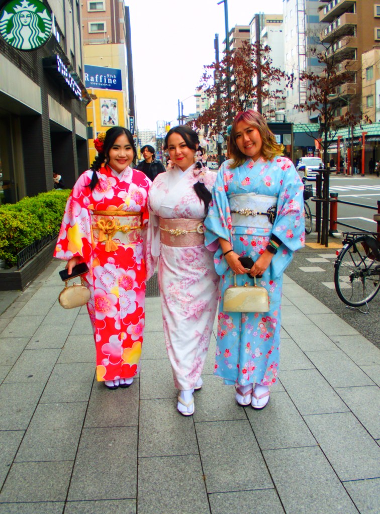 From left: Travellers dressing up in rental kimonos at Asakusa, early blossoms at Senso-ji Temple. Photos © Zarina Holmes