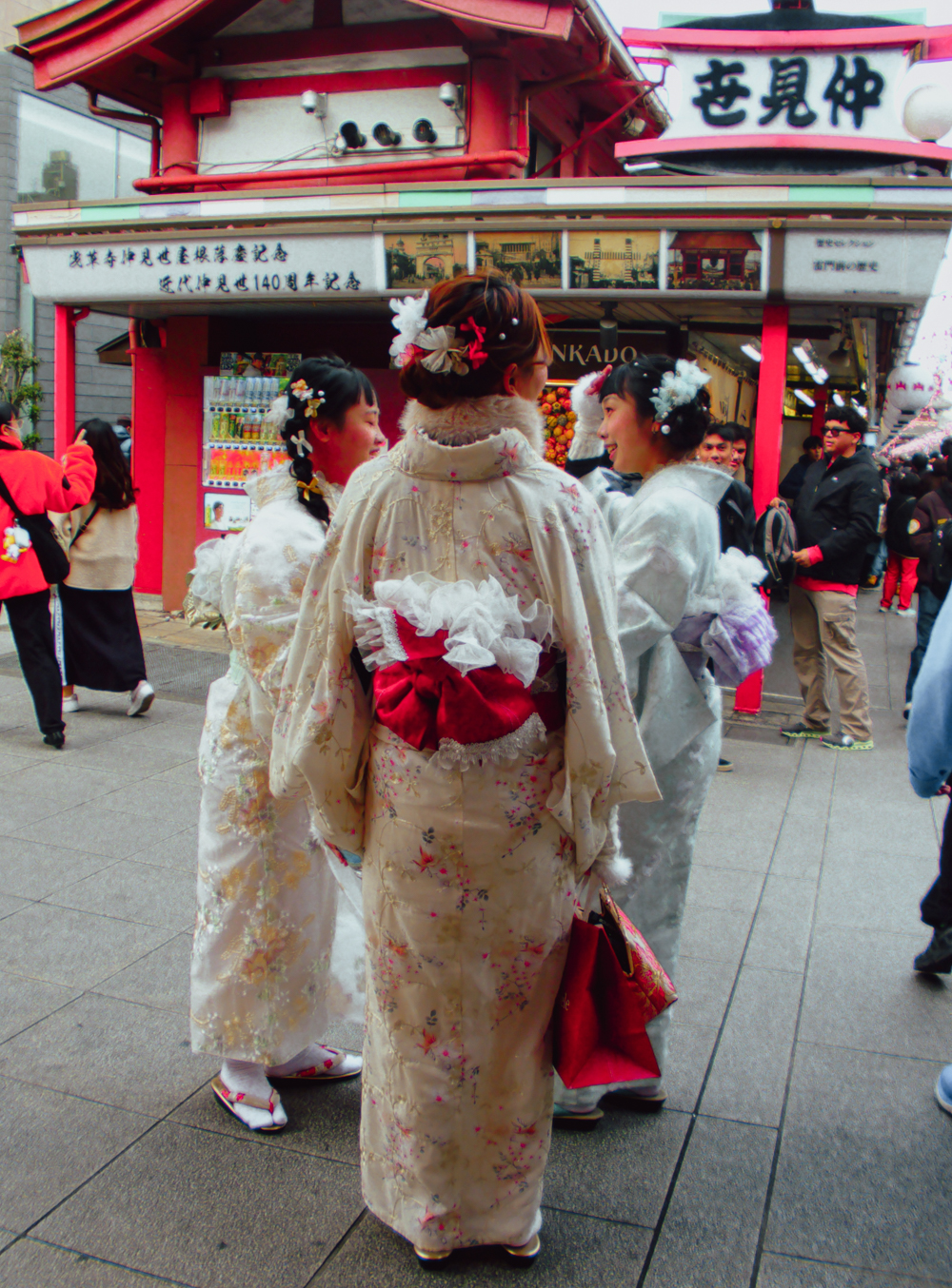 Top: New Year’s dinner at Asakusa, The Year of The Horse, kimono wearers at Senso-ji Temple, colourful vending machine. Photos © Zarina Holmes