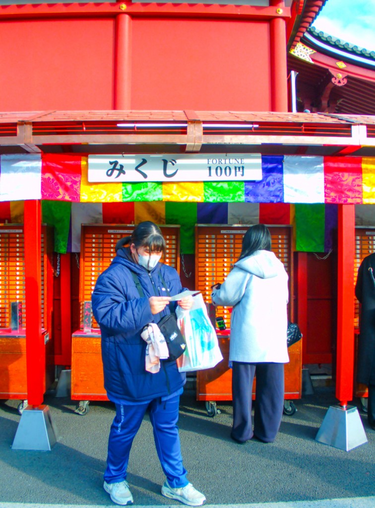 From left: Outside Sumida Hokusai Museum, making a wish at Senso-ji Temple, scene of Asakusa. Photos © Zarina Holmes